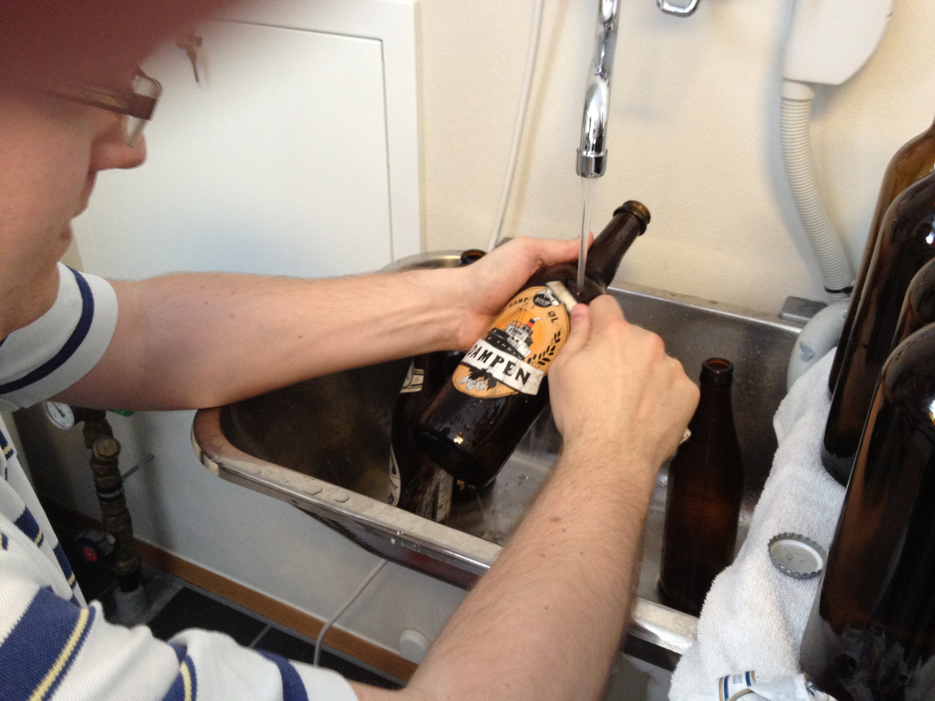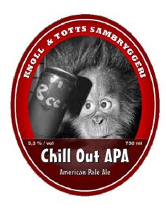 Etter meskingen er det klart for skylling og koking. Som kokeøl har vi enkelt og greit valgt får egen Chill Out APA (Brygg #6). Her har vi ingen smaksnotater på etikettene merkelig nok, faktisk har ikke denne flaska fått på etikett i det hele tatt. Igjen et friskt øl, med et markant humlepreg/bitterhet og lang ettersmak. Nå har ikke dette brygget stått så veldig lenge på flaske enda, men amerikansk pale ale en skal visst være mer humlepreget enn den engelske varianten så det er nok ganske typeriktig. Etter å ha fått en altfor mørk farge på dampølet vårt har dette brygget fått en flott gyllen farge.