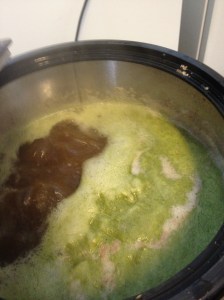 Fin grønfarge på skummet når humla blei tilsatt.