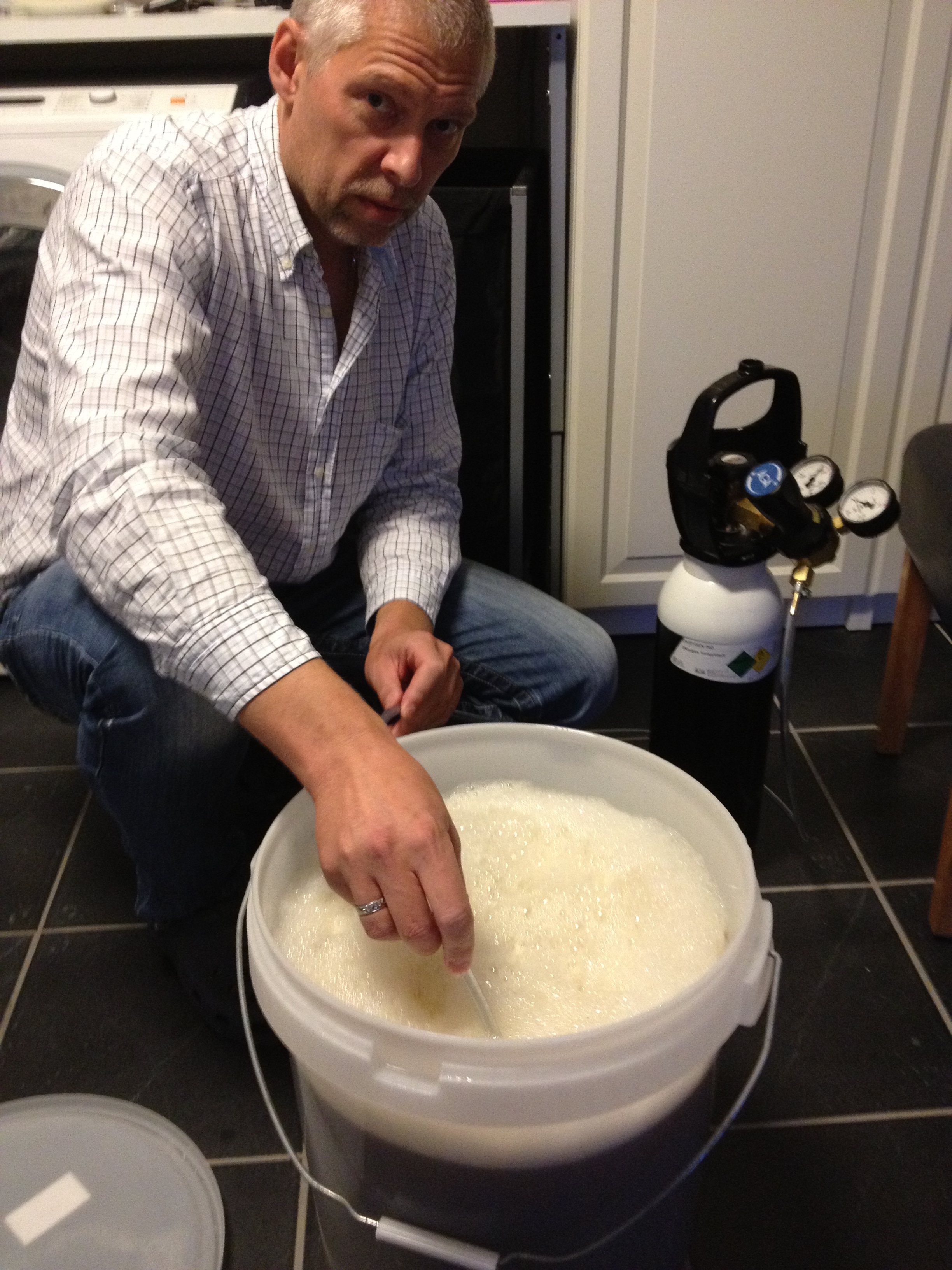 Forrige gang det ble brygget Pale Ale så gikk det ganske dårlig. Så nå har vi gått til anskaffelse av litt gjærdoping. Nemlig ren oksygen.