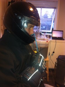 Mens vørteren koker så er det klart for kveldens høydepunkt, innvielse av platekjøleren. Slangene fra testoppsettet er byttet ut med stivere og kortere slanger, som også er godkjent for næringsmiddel. Vi vil jo ikke ha ekle stoffer i ølet. Kanskje er slangene i stiveste laget, så på sikt bør vi nok montere fast pumpe og kjøler i en plate.