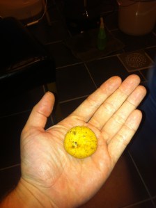 De 24,5 literne vi har fått i gjæringsbøtta er mildt sagt grumsete. Ved å ikke kjøle ned vørteren i kokekaret så utfelles ikke proteiner, estere og annen trub ned i bunnen av kokekaret, men følger med over i gjæringsdunken. Dette kommer nok til å skje etterhvert i gjæringskaret så det bekymrer oss ikke så mye. Denne gangen har vi blodfersk gjær, da vi laget starteren var det bare en liten uke siden gjæra hadde forlatt fabrikken i England. Med en god dose tilsatt O2 så skulle alt ligge tilrette for god gjæring de kommende ukene.