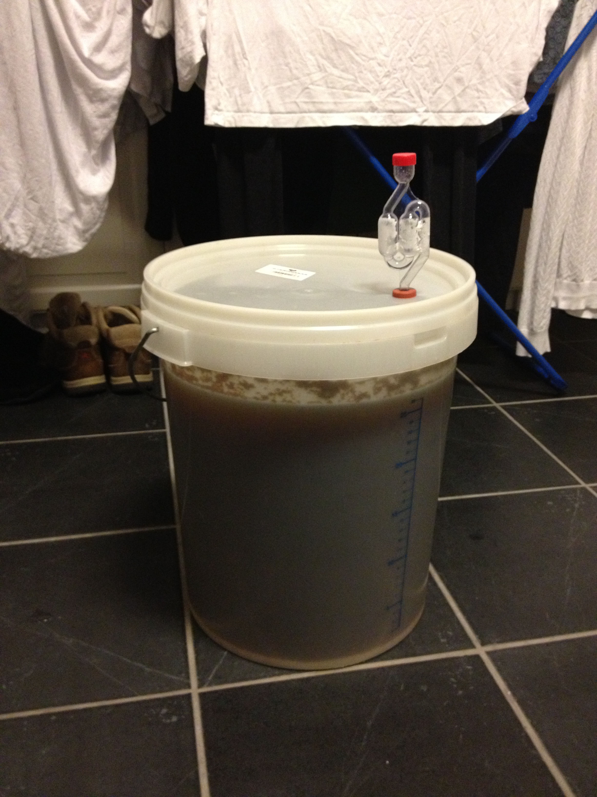 Vi har også et par andre splitter nye dingser denne gangen. Det ene er denne flotte heverten med pumpe. To drag med pumpa, og ølet flommer over til det andre karet. No more blowjobs med den gamle heverten med andre ord. I tillegg har vi en klype for å feste heverten til gjæringskaret….