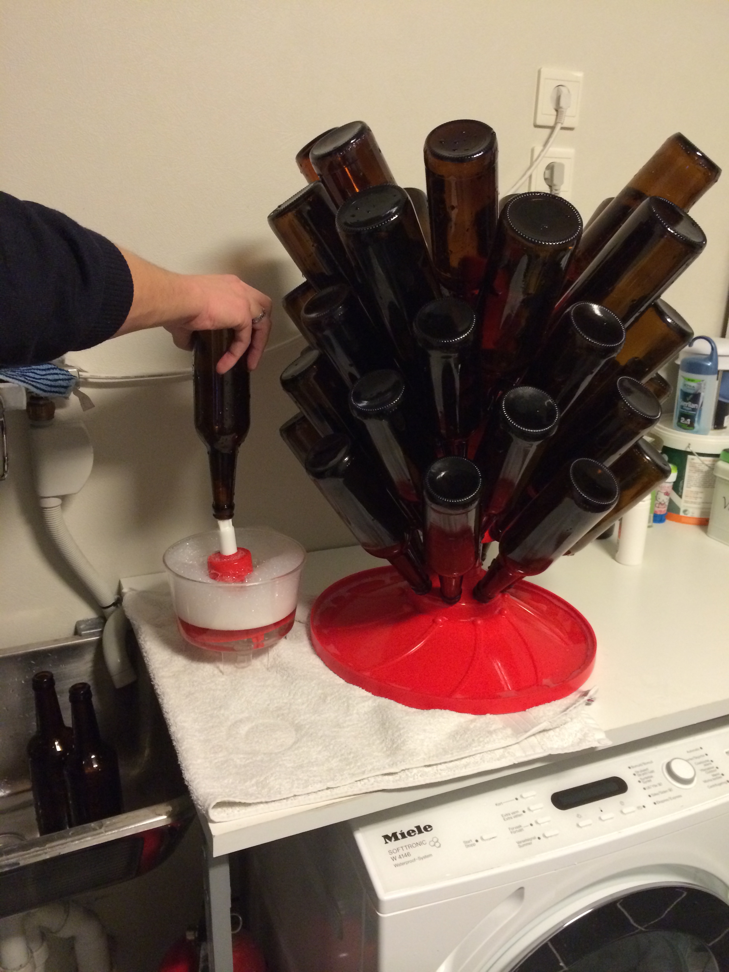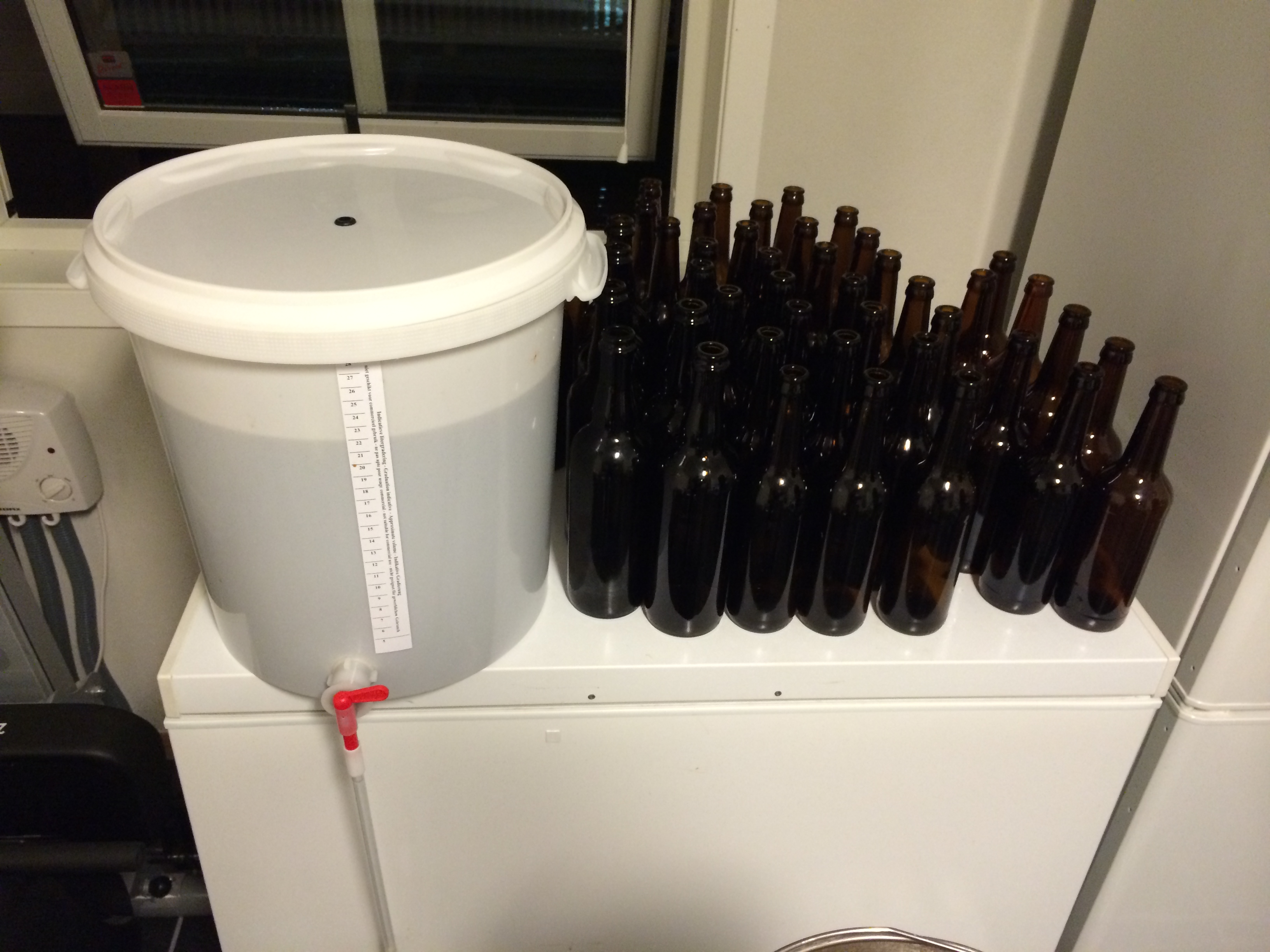 OG måles til ca 1.060 – spot on, og med gode 25 liter i gjæringskaret så er vi fornøyde med dagens innsats. Så håper vi det blir et produktivt samarbeid, og ikke full krig, mellom England og Belgia i gjæringsdunken.