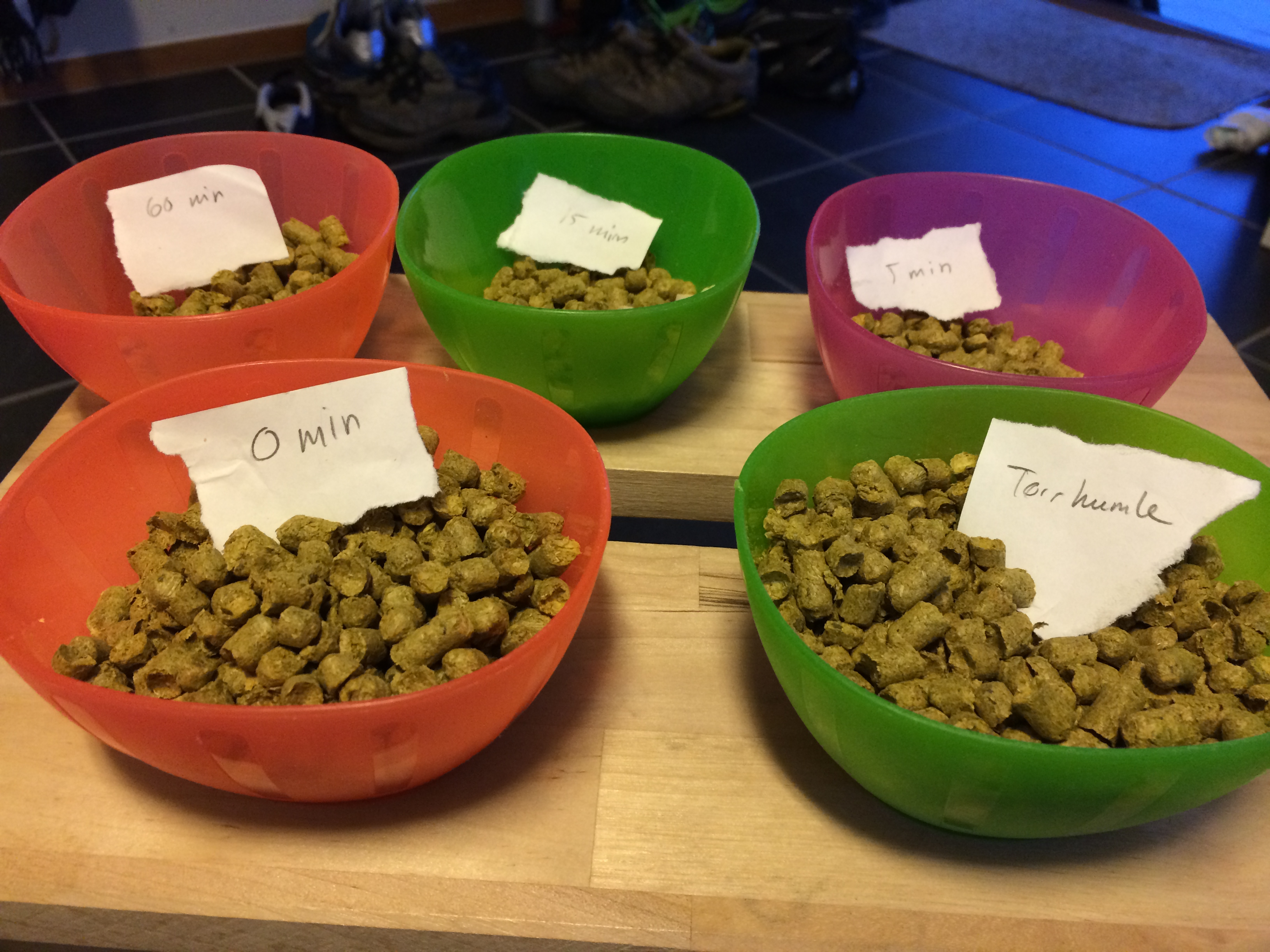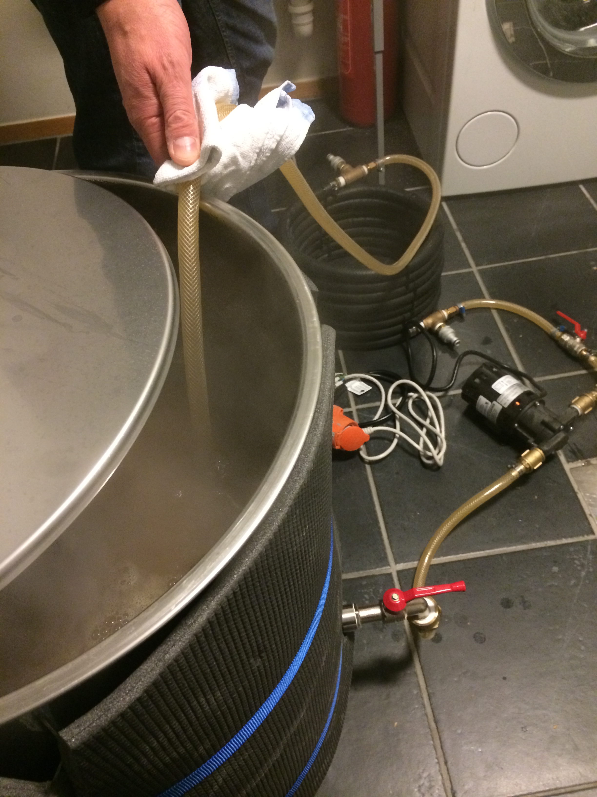 Et annet tema som ble diskutert var hvordan slik kjøling påvirker humletilsetningen ved 0 minutt. Altså kokeslutt. Når humla ikke får trekke i vørteren under nedkjøling, mister vi da litt av humleeffekten? Vi kom ikke til noen definitiv konklusjon, men tror vi ved så sene humletilsetninger kommer til å sirkulere den nedkjølte vørteren tilbake i kokekaret, slik at får litt mer effekt av humla. Tror vi.