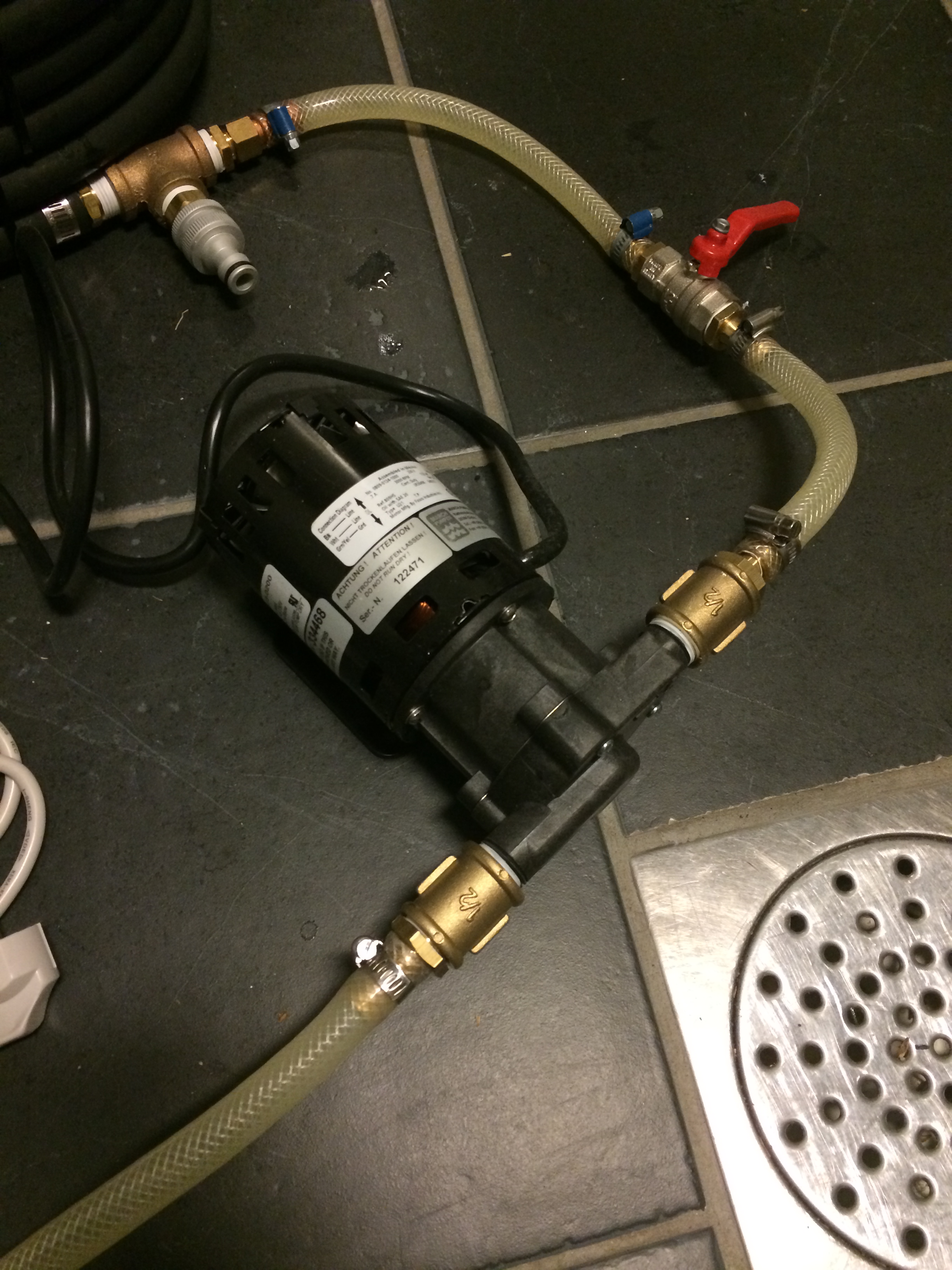 Slik ble oppsettet når alt var koblet. Dessverre så ble det som i teorien skulle være supereffektiv kjøling til superfrustrerende kjøling i praksis. Med mye humle i karet, så ble jobben litt for krevende for sirkulasjonspumpa vår. Den tettet seg til, og vi fikk ikke så god flow gjennom kjøleren. Det gikk etterhvert, men vi fikk ikke utnyttet kjøleren maks. Vi trenger med andre ord en ny pumpe.
