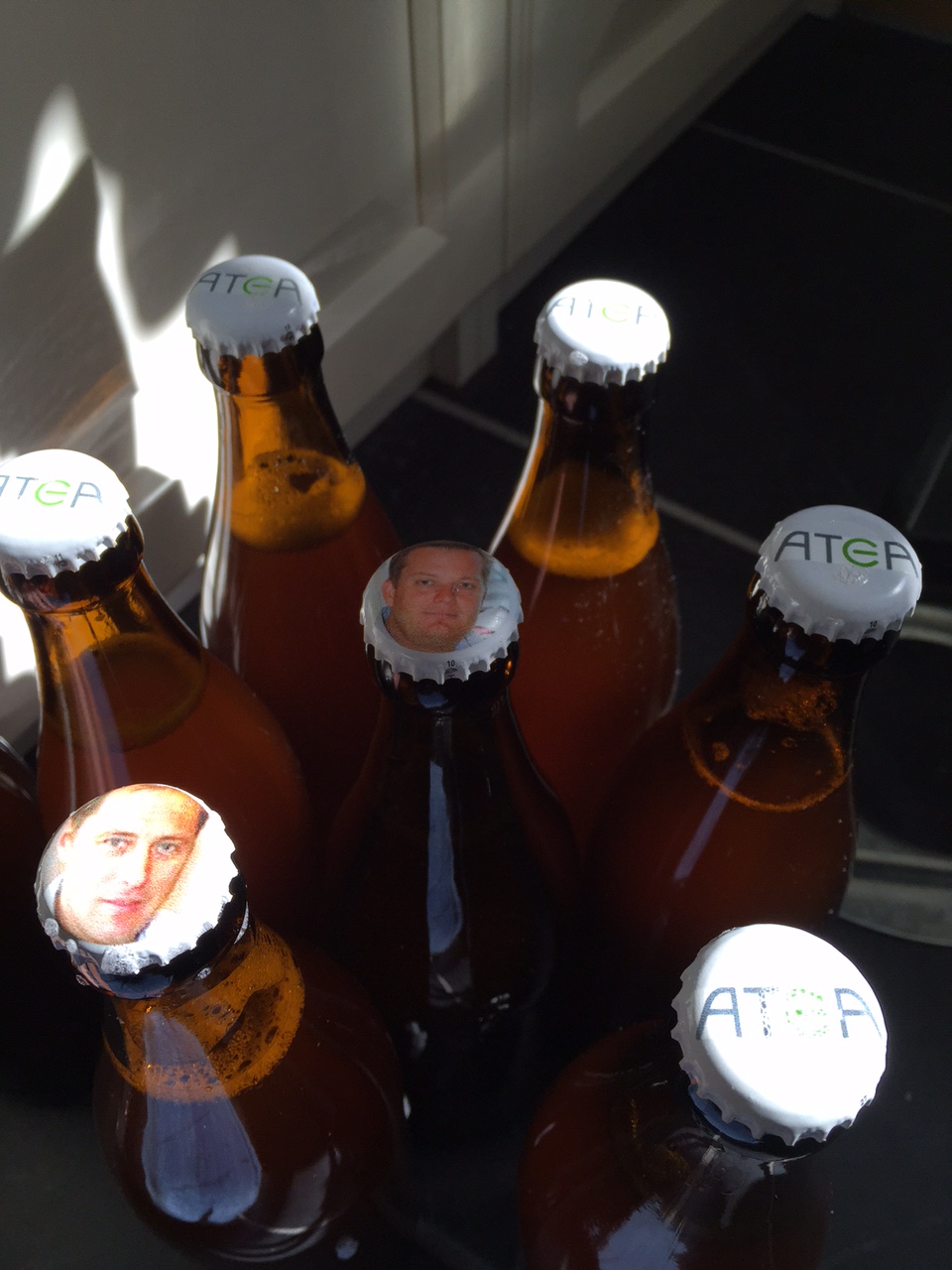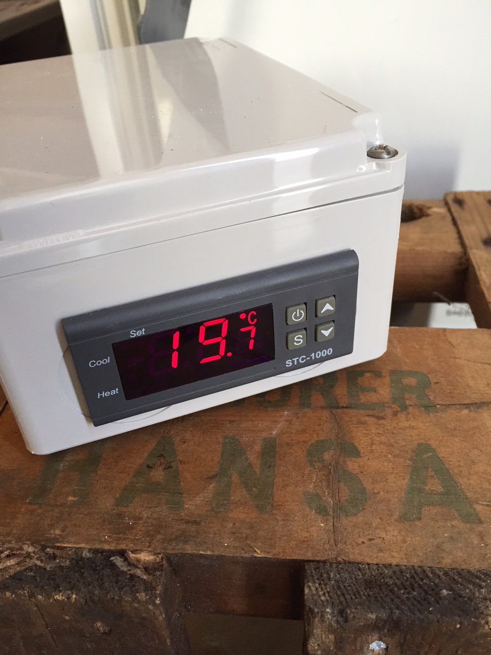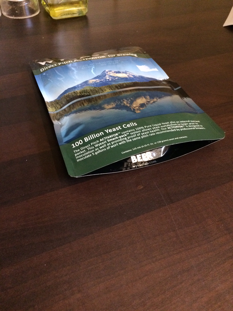 Og apropos gjæringskar. Vi er litt for late og gjerrige denne gangen, så vi gjenbruker gjær fra APAen vi nylig flasket. Og da har vi selvsagt vasket slurryen og målt opp riktig mengde? Nei. vi har ikke engang giddet å vaske gjærkaret, og vi tapper rett på den gamle gjærkaka. Overpitching deluxe med andre ord. I etterkant ser vi i faglitteraturen at vi nå har 4-5 ganger så mye gjær som vi trenger, og det er ikke helt heldig. Vi får revuderere denne strategien neste gang. Men aktiv er den denne gjæra. Allerede en time etter at vi har tilsatt oksygen og satt dunken til gjæring så plupper det bra i gjærlåsen.