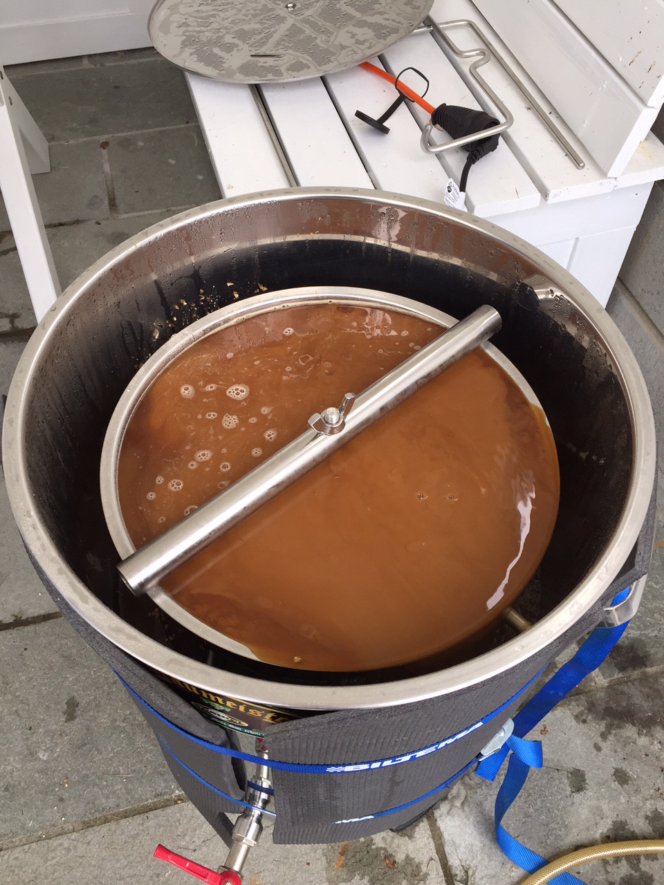 Allerede etter 30 sekunds mesking så får ølet en deilig brunfarge. Ser ut som flytende sjokolade.