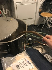 Mens Tott som vanlig roter og søler, denne gangen med kjøleren, så sitter Knoll og passer på at kjølingen går som planlagt, samtidig som han passer på posen med Spraymalt. … Ja, du leste riktig, dette er stusselig multitasking. Spraymaltet burde jo være tilsatt i kok for lenge siden. Skandalebrygg, igjen! Kjølingen stoppes, og vi tar en sjanse på å give oppi spraymaltet selv om vi ikke lenger er i kok. Litt som en sen humletilsetning dette. Det kan umulig gå bra, men slik ble det i dag.